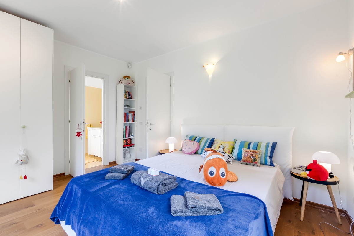 This luxury villa has three levels and offers everything needed for an unforgettable vacation. With a private garden, saltwater pool and sauna make this a perfect lakeside retreat. The ground floor features a grand entrance hall leading to a spacious living room with sofas, smart TV, and a cosy fireplace. A dining area accommodates eight, while a fully equipped kitchen has a fridge, coffee machine, and a second breakfast table. The living room has direct access to the indoor pool, back garden, and sauna, complete with an indoor shower. On the first floor, the master suite includes a private balcony with lake views and an en-suite bathroom. A second double bedroom also offers an en-suite bath. The top floor houses two more bedrooms.