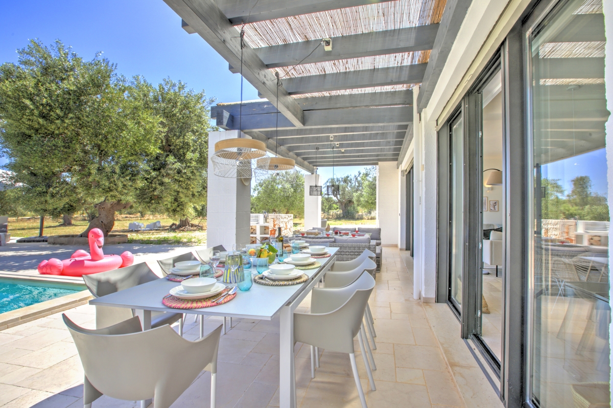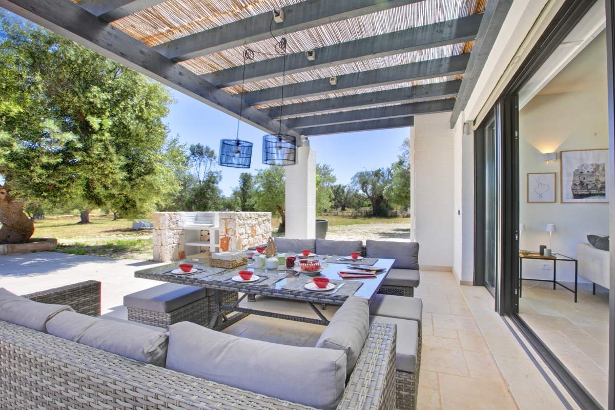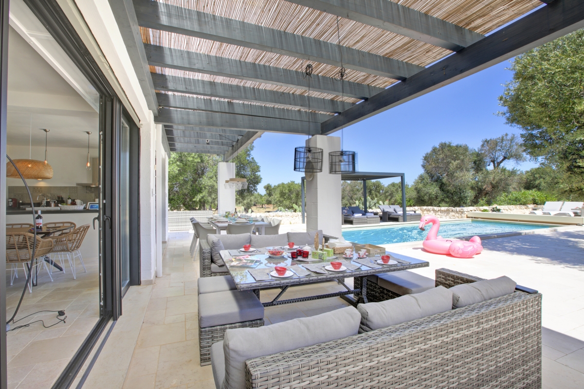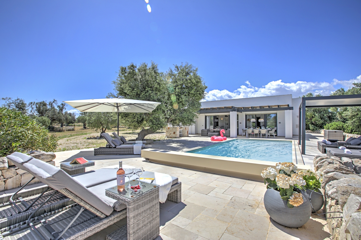 Discover the best of Puglia at this contemporary villa for 8, quietly positioned in the countryside outside the tranquil town of Carovigno.