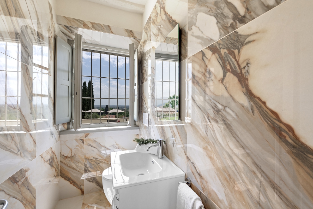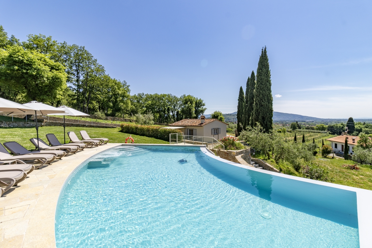 Unwind in style at this luxurious hilltop escape in Arezzo with a private infinity pool, gym, and stunning mountain views.