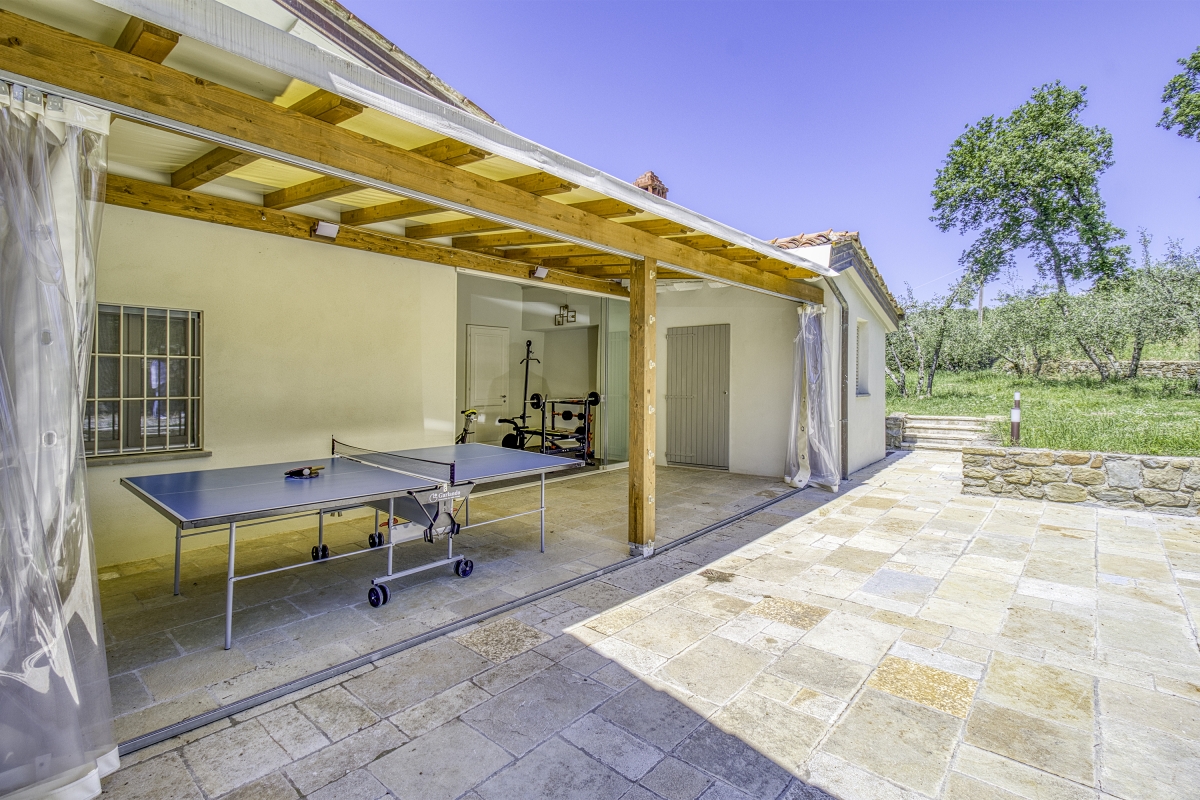• Private parking space • Private garden • Family-friendly • Fenced garden • Outside table-chairs • Gym • Table tennis • Fire extinguisher • Washing machine • Hair dryer • Free Wi-Fi • Outdoor private pool • Outdoor infinity pool • Smart TV