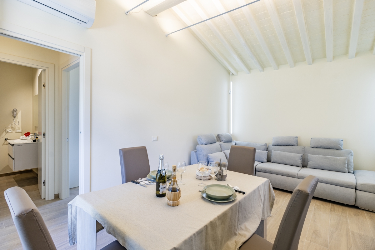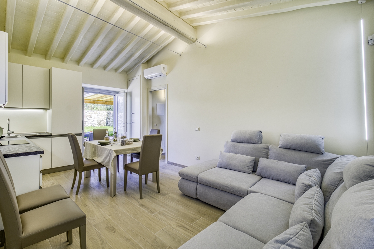 Inside, the villa features a spacious open-plan kitchen and lounge-diner thoughtfully designed for relaxation and shared moments. The fully equipped kitchen includes a coffee machine, dishwasher, electric kettle, oven, toaster, and induction hob. The living area is furnished for both comfort and entertainment.