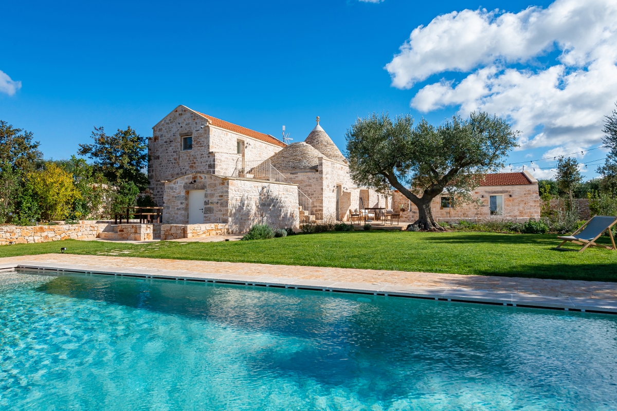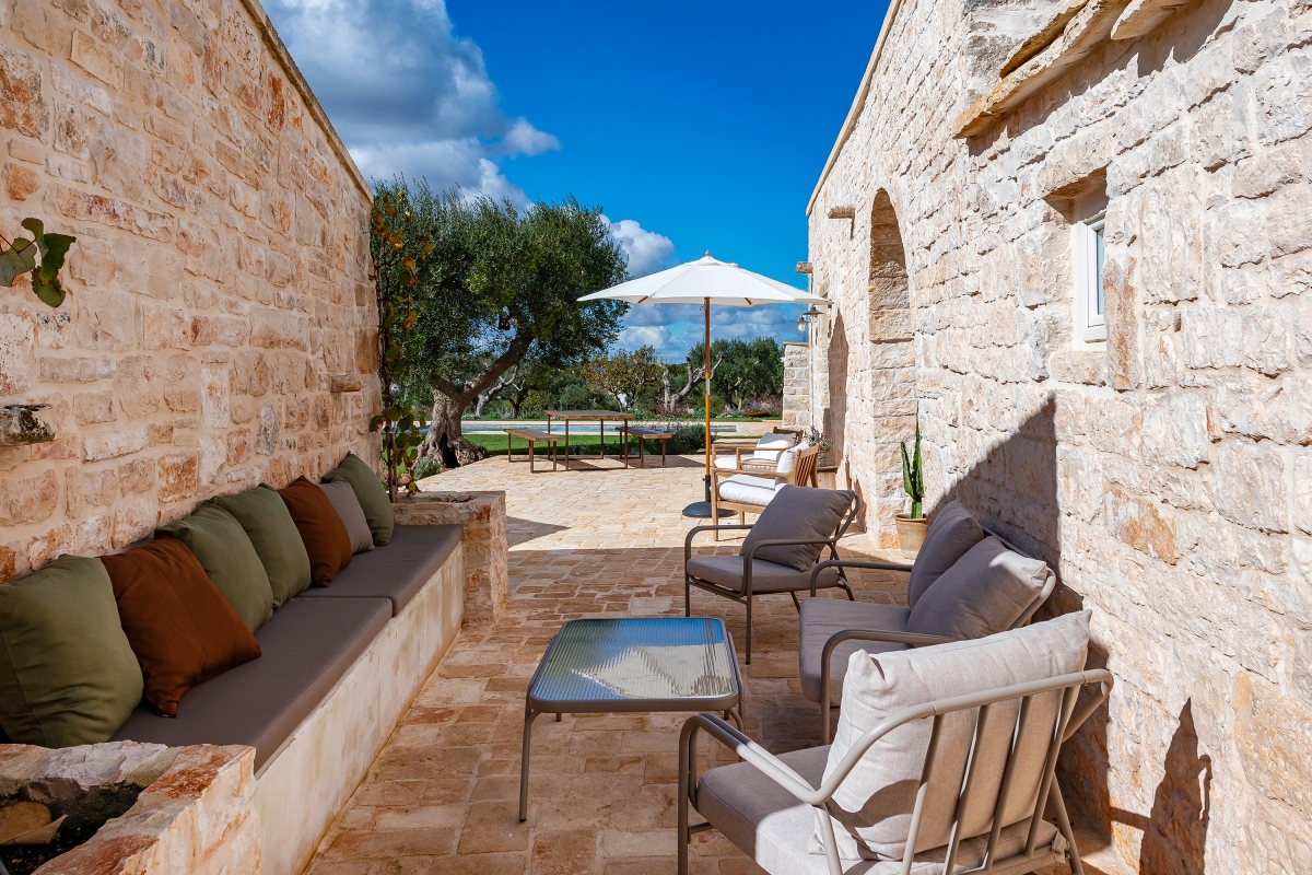 Unwind amongst the centuries-old olive groves, traditional trulli, and vineyards of the Apulian countryside at this elegant villa for 8. Enjoy lazy days by the panoramic pool, reconnect with loved ones on the terrace or relax in the spa.