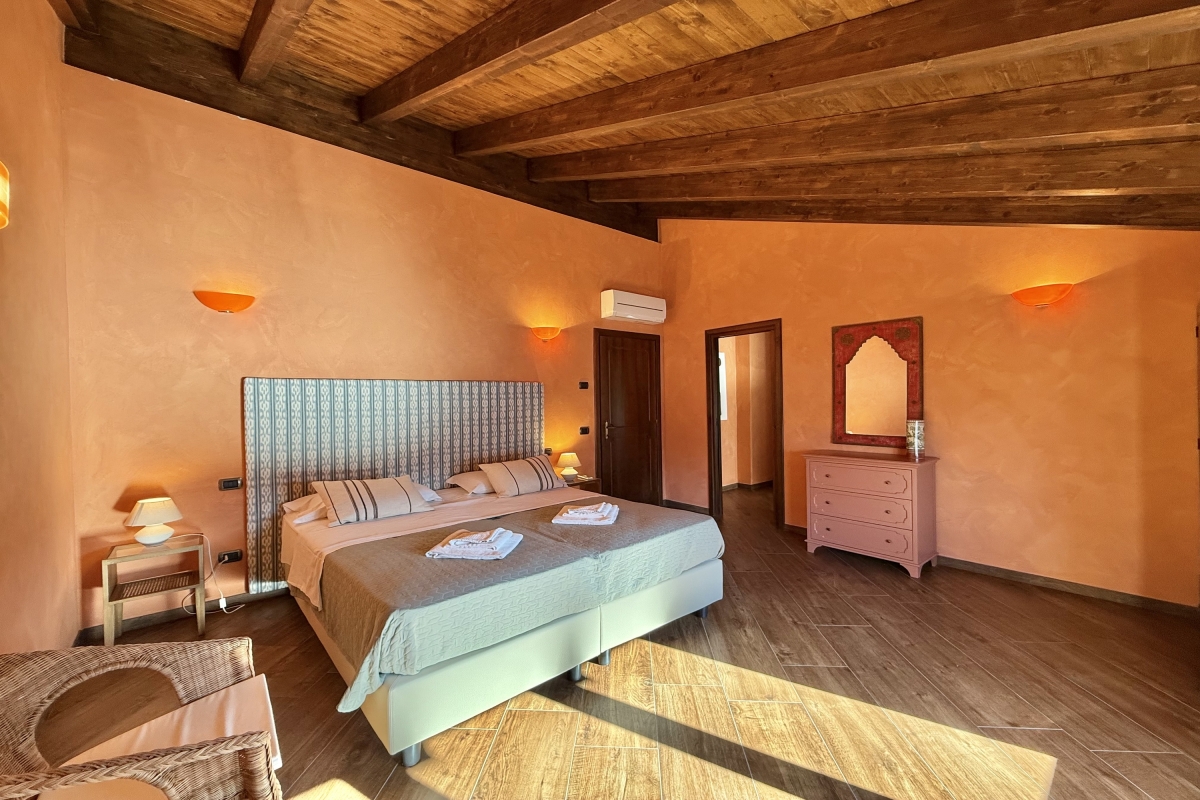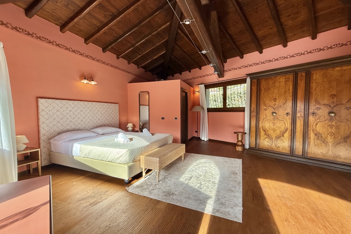 The villa’s guest house features a 6th bedroom with double bed, lake views and en suite shower room, alongside a 7th double bedroom also with en-suite shower room.
