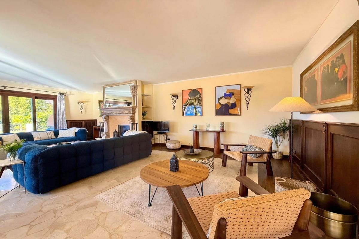 For more laid-back family moments, the villa is also equipped with a -2 lower ground floor games room and a lower ground floor with a 2nd sitting area, small kitchen, informal dining area, a fussball, ping pong table and selection of toys. This open plan space also leads out onto the lower ground level of the garden, which features a BBQ grill area, pool access and a secure netted trampoline for the kids.