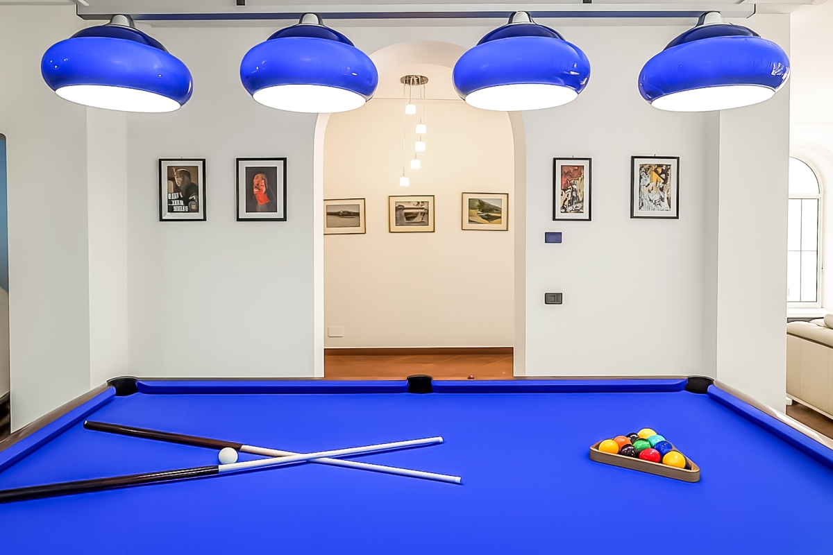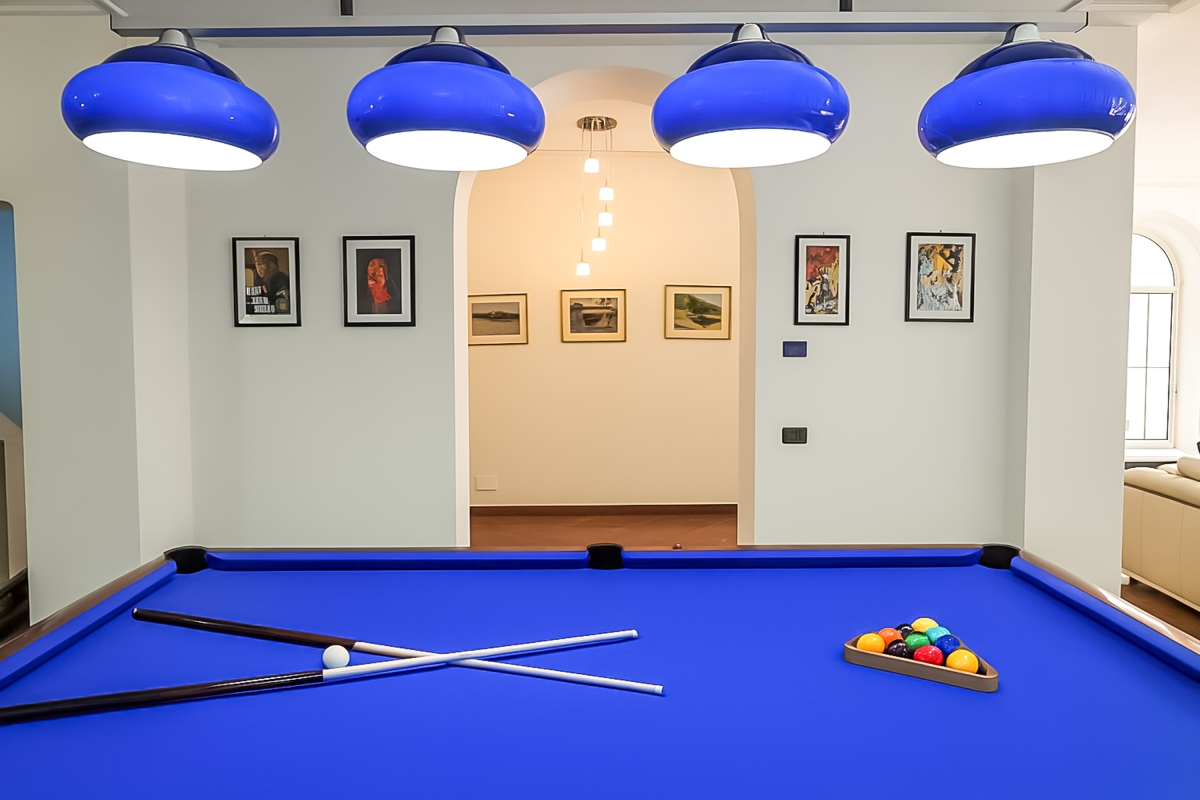 Spread over four levels, the air-conditioned villa boasts a spacious living room with a large sofa, satellite TV (with Sky Cinema), and a full-size snooker table. The adjacent kitchen is fully equipped with an electric oven, microwave, blender, toaster, kettle, American coffee machine, and BBQ — perfect for both casual meals and formal dinners. A high chair is available for young guests.