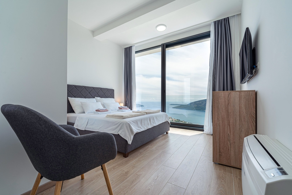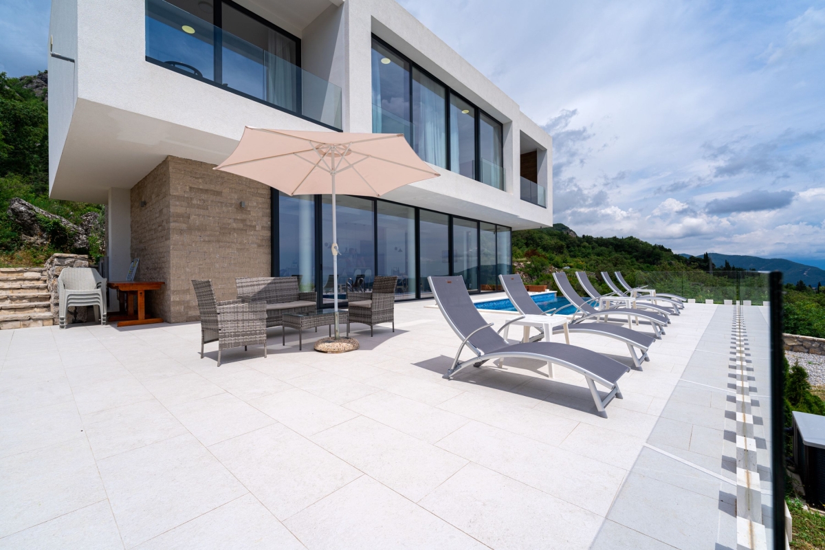 This stunning contemporary villa, with panoramic views over Kotor Bay, will take your breath away! A perfect example of contemporary architecture set in unspoiled countryside, the villa sleeps 8 people in comfort. This property guarantees a truly memorable holiday.